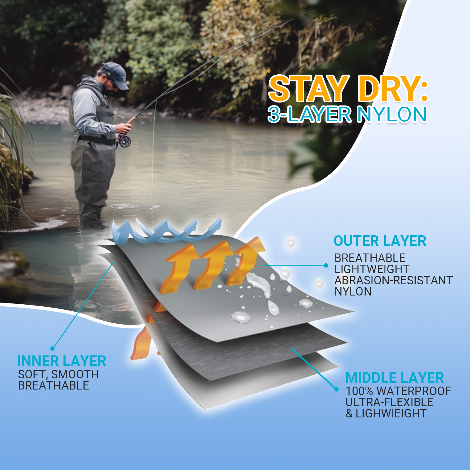 Почему стоит выбрать дышащие 3-слойные рыболовные вейдерсы 8Fans® с X-Back
