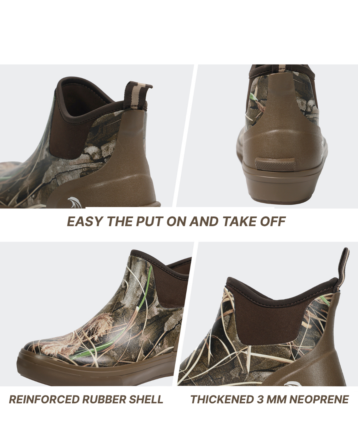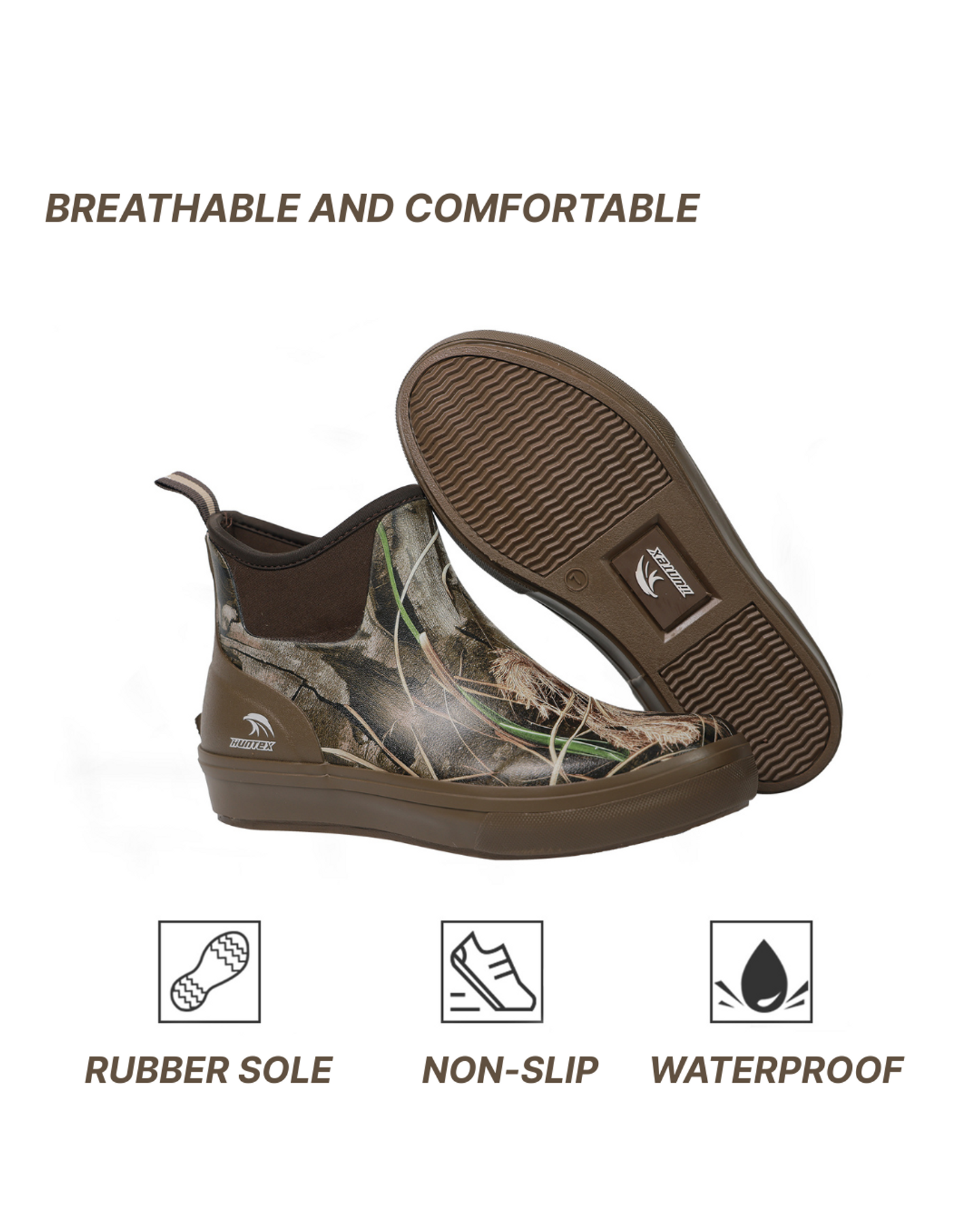Мужские водонепроницаемые ботинки для палубы 8Fans & HUNTEX с камуфляжным принтом и принтом мокрой травы