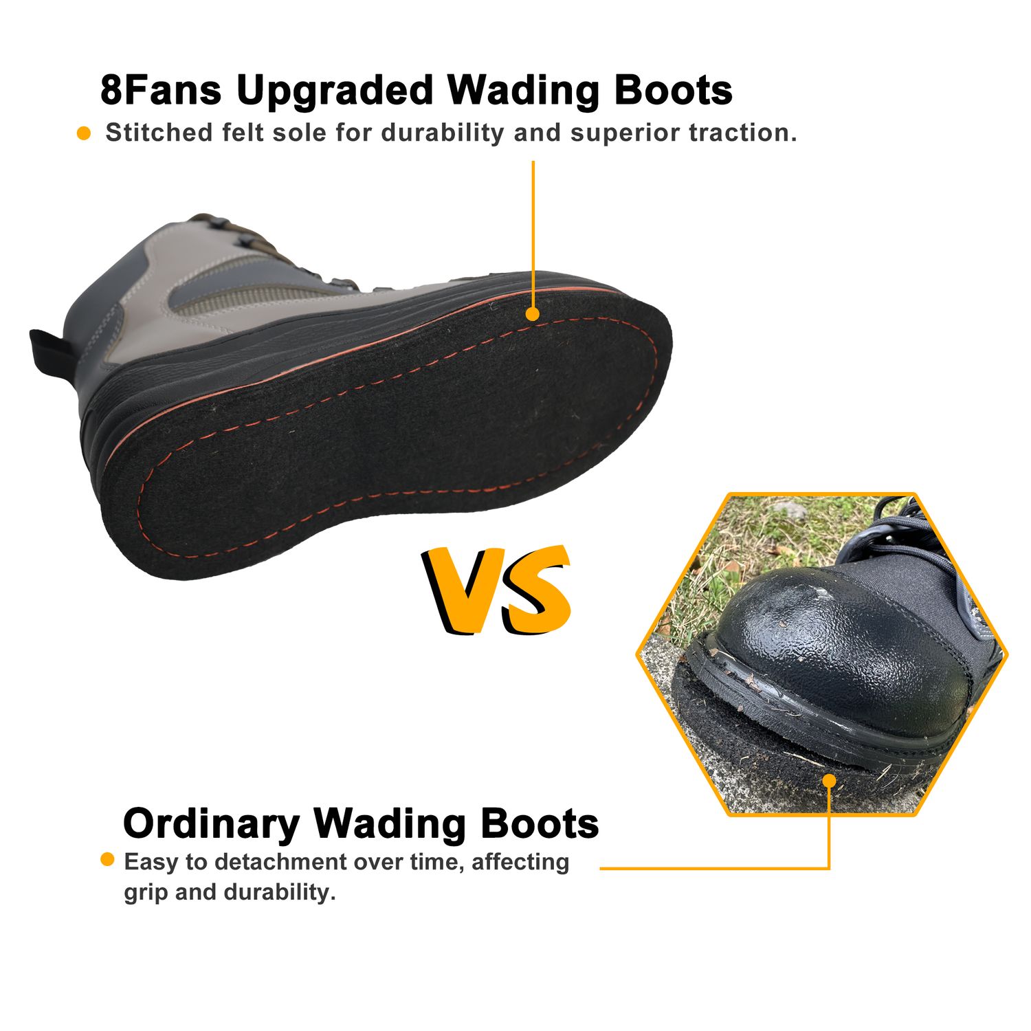Мужские забродные ботинки 8Fans с нескользящей войлочной подошвой, превосходный комфорт для рыболовов, идеально подходят для ловли рыбы нахлыстом