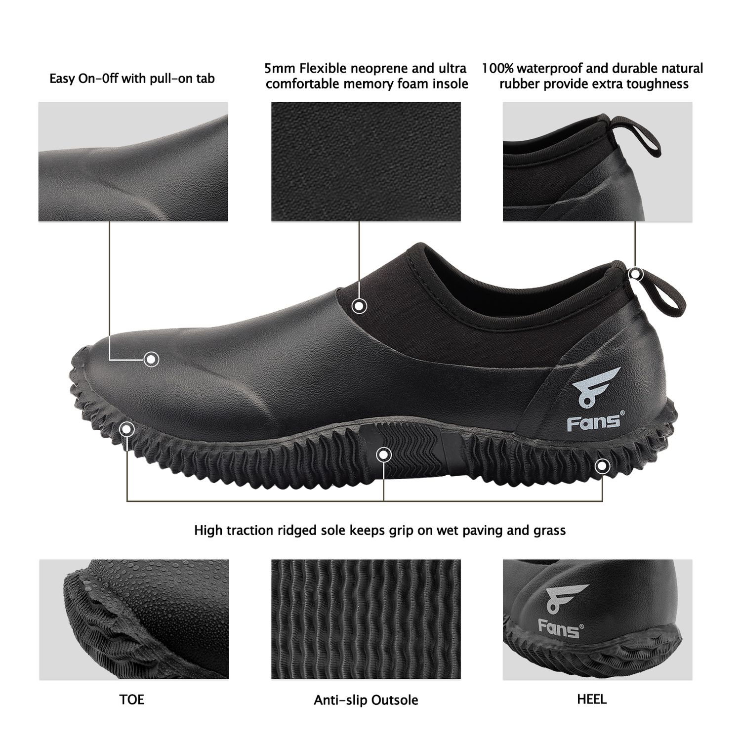 8Fans Мужские черные резиновые неопреновые садовые туфли со стельками из пены с эффектом памяти